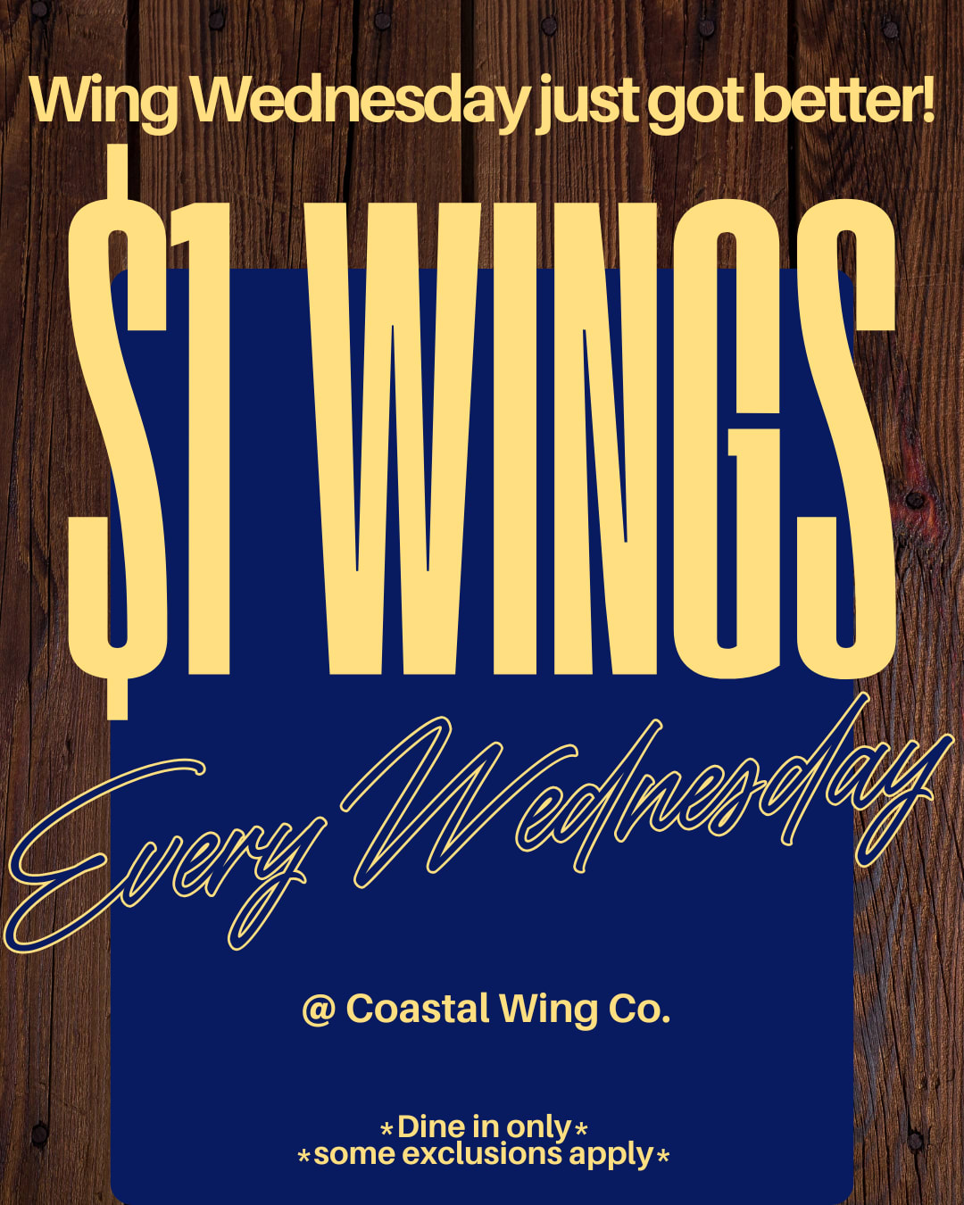 Come In And Get $1.00 Wings! Every Wednesday at Surf City and Sneads Ferry