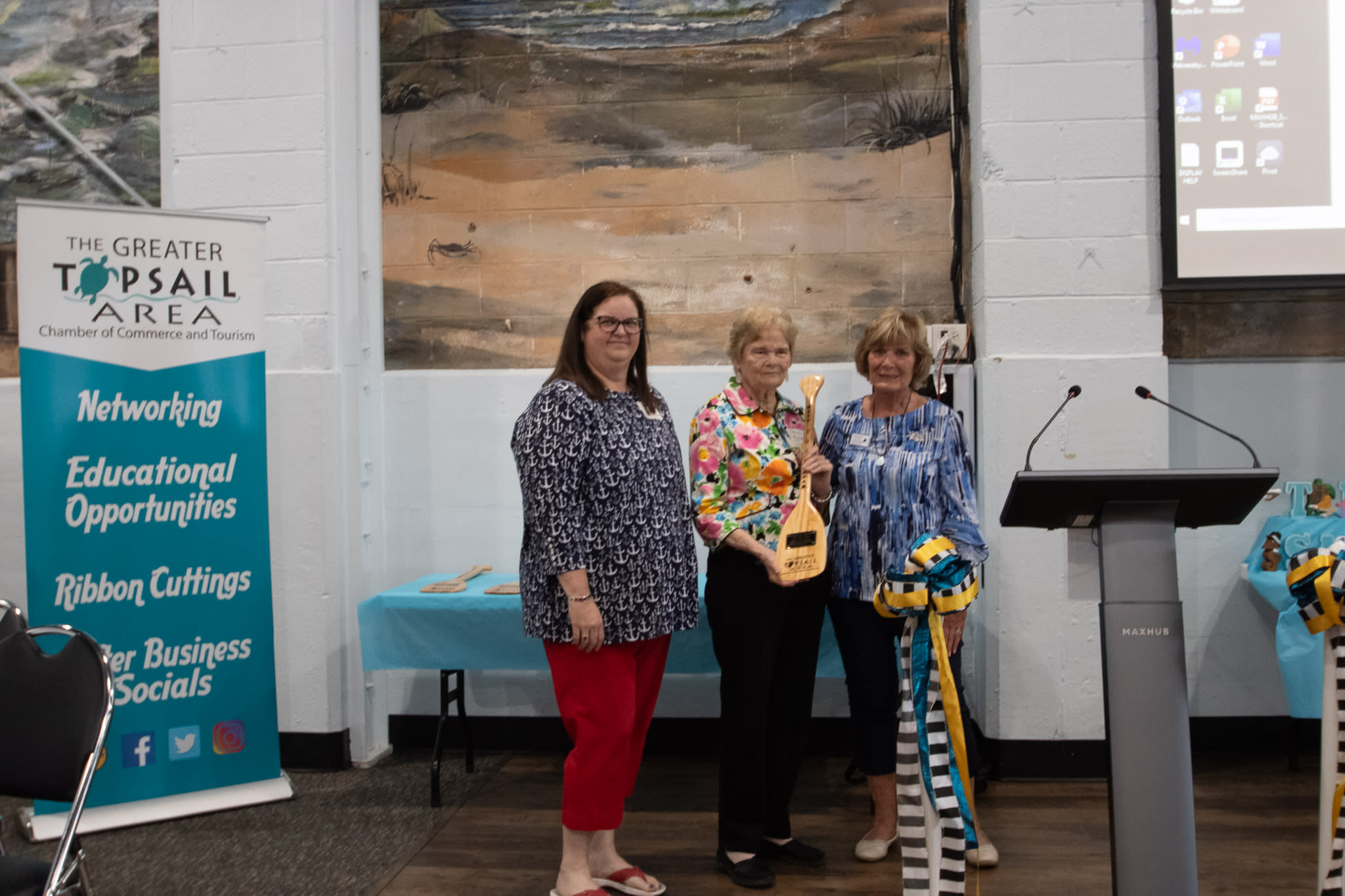 The annual luncheon was conducted at The Assembly Building in Topsail Beach. The Historical Society of Topsail Island was a sponsor of the event. D.R. Horton was a major sponsor. The luncheon was catered by Middle of the Island Catering.